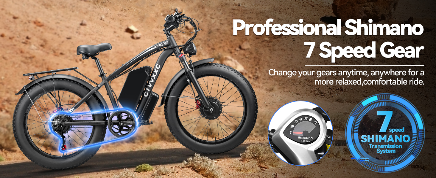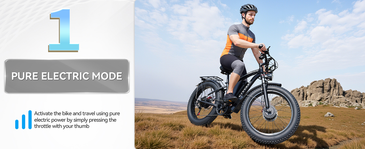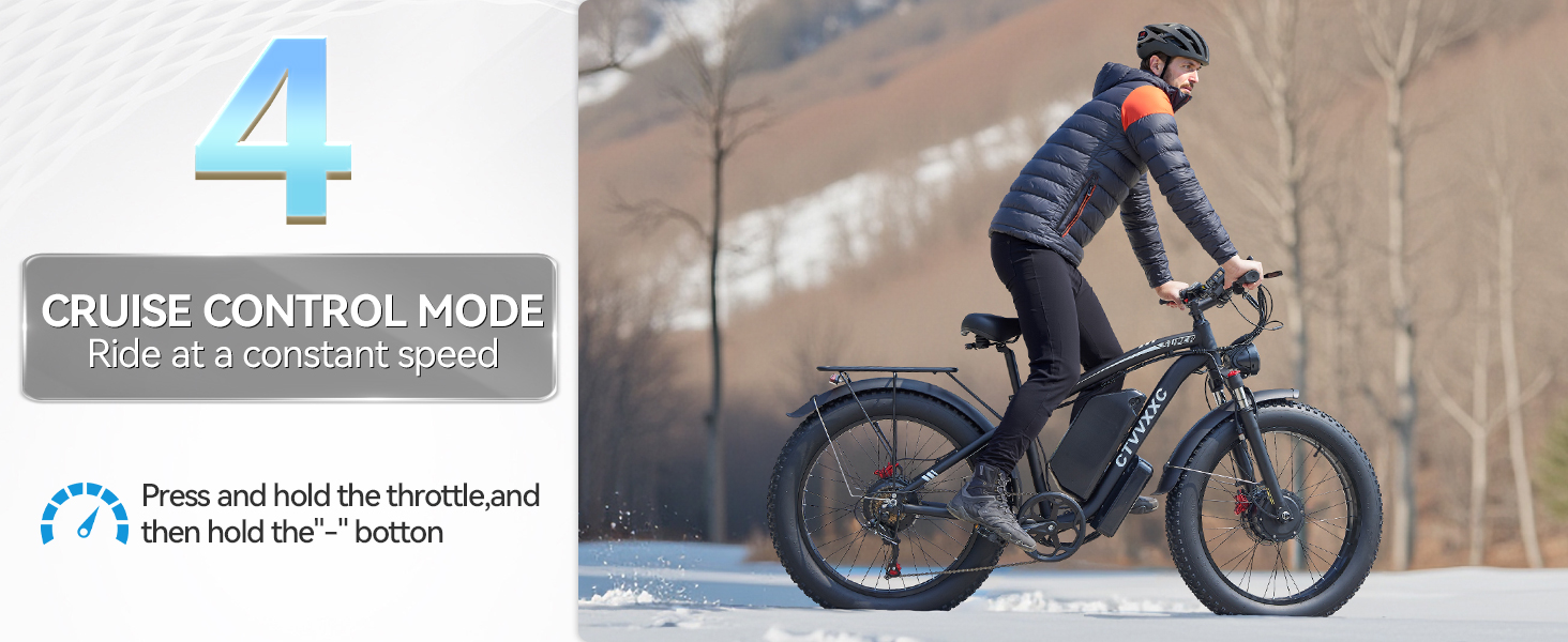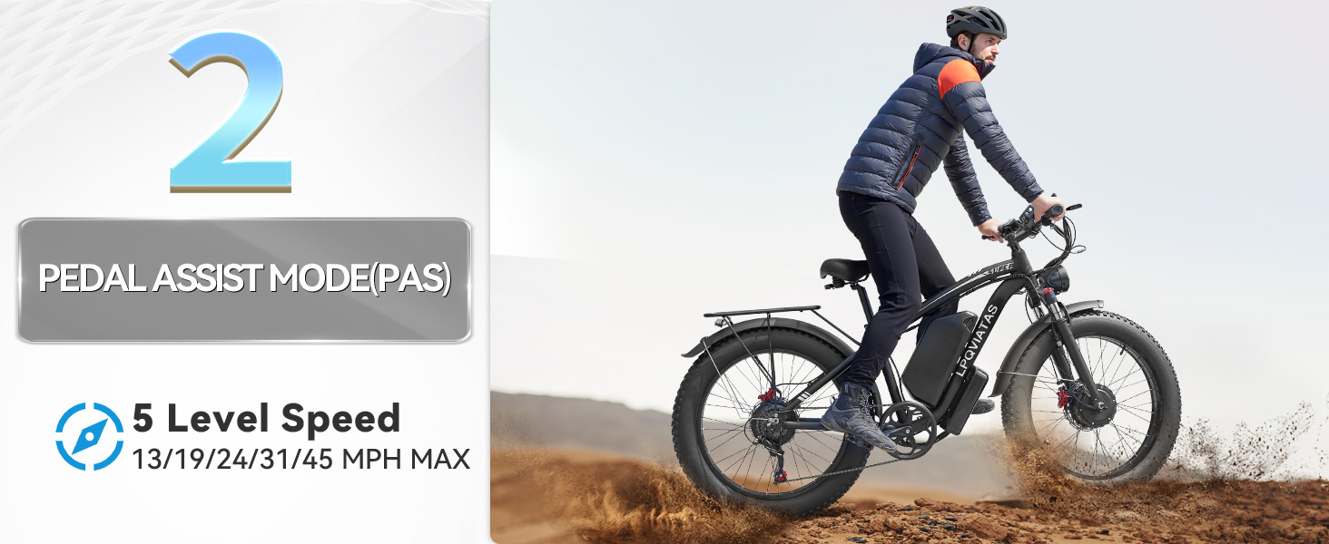 - 【6 Riding Modes】Including pedal assist mode, dual motor pure electric mode, single motor pure electric mode, normal bike mode, cruise control mode, and walking mode. Elevate your off-road adventures with our dual motor electric bike for adults. Unleash the thrill of conquering diverse terrains, from rugged mountain trails to challenging off-road paths. Multiple modes are suitable for different road conditions, making your riding journey more fun