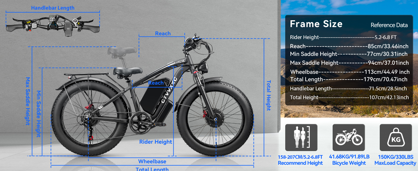 - 【Electric Bike Upgraded Configuration】Featuring sturdy 6061 aluminum frame, with the ability to support up to 330 lbs, the recommended height for the rider is 5'2" -6'8", perfect for most people to ride.600 lumen large headlight provides strong and full illumination both day and night.High-brightness brake light can remind the car and people behind,making the rider safer at night.